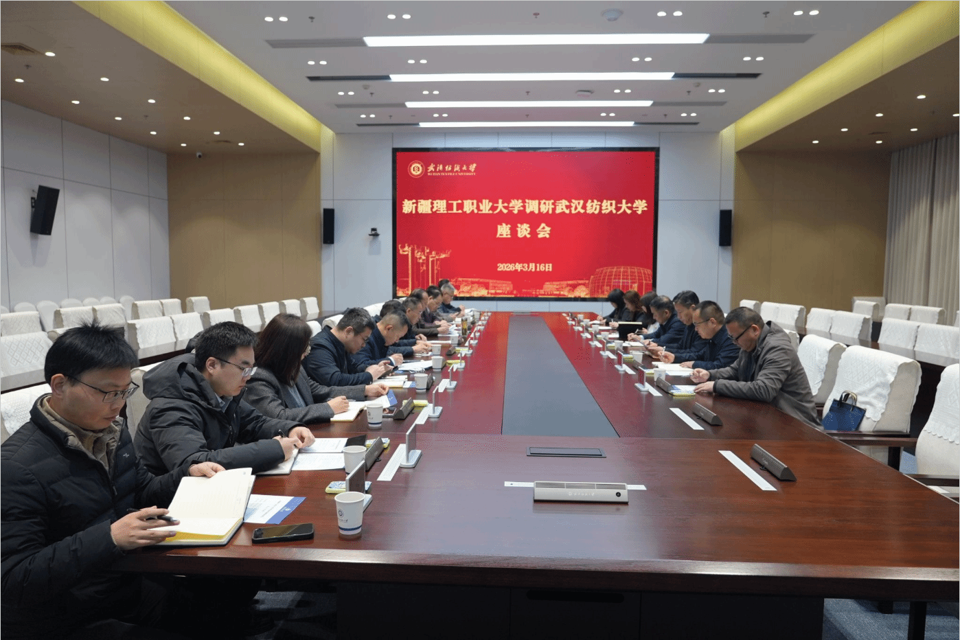 3月16日上午,新疆理工职业大学党委书记石长青,党委常委、纪委书记王力一行来校调研交流。校党委书记徐卫林院士,校党委常委、副校长冯军出席调研座谈会。会议由冯军主持。