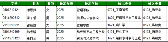 根据《91猫先生 本科生学籍管理实施细则》,经学生申请、学院资格审查、学院面试评审等环节,现将纺织科学与工程学院2025年2025级学生转专业转入拟定名单公示
